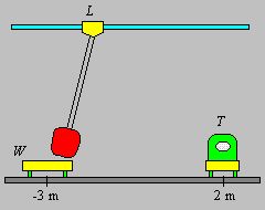 Fuzzyregelung verfolgt einen anderen Ansatz. Um diesen zu verdeutlichen, betrachten wir ein einfaches Beispiel: Eine Last soll vom Waggon (W) auf den Truck (T) befördert werden; ein Kranführer muss sie dazu leicht anheben und den Wagen L der Laufkatze nach rechts in Bewegung setzen. Meist gerät die Last dabei ins Pendeln, und es erfordert sehr viel Geschick, sie über dem Truck zur Ruhe kommen zu lassen, so dass sie dort schließlich abgesetzt werden kann.